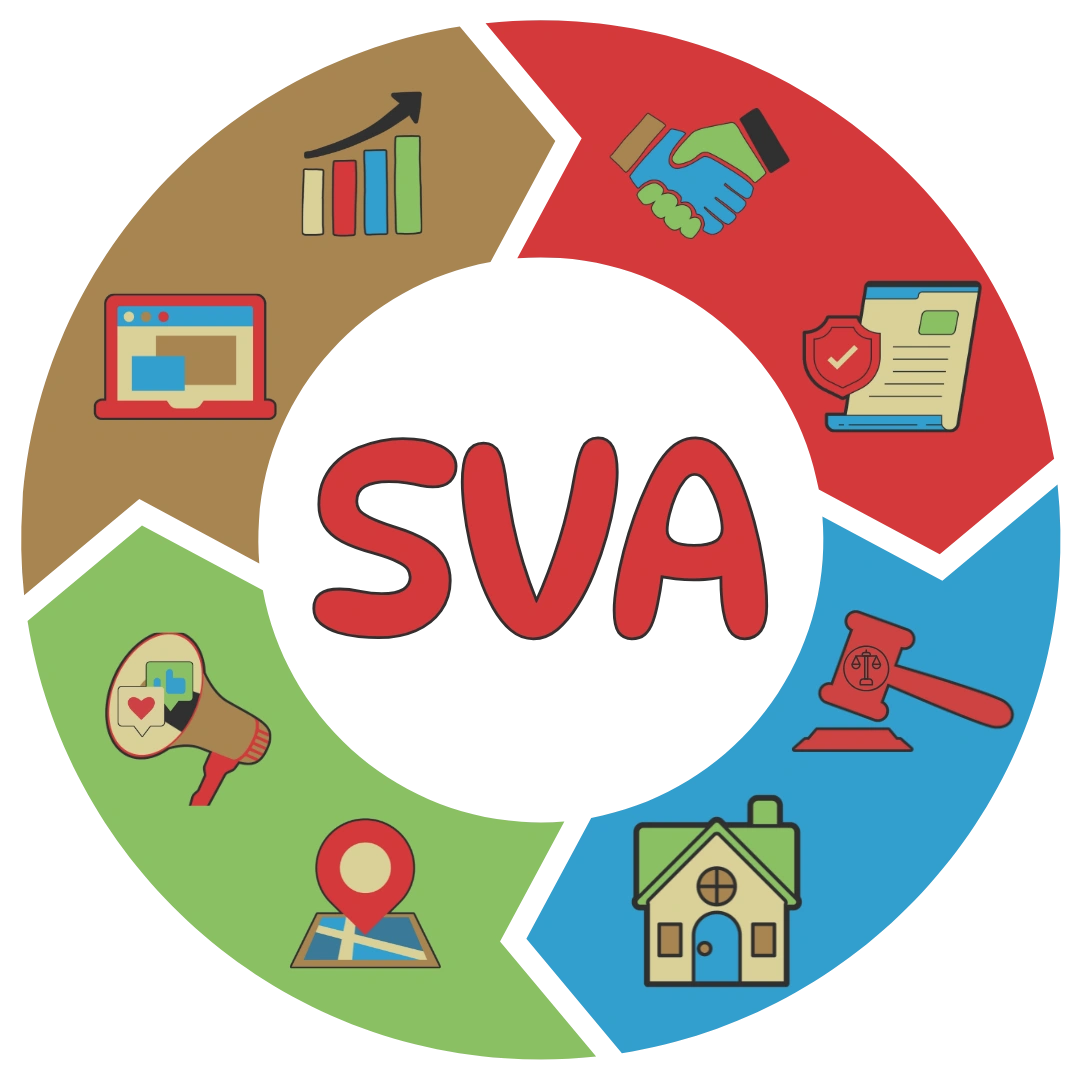 SVA is more than a virtual assistant company. We are your behind-the-scenes partner. From business systems and paralegal services to real estate coordination and marketing strategy, we provide the structure, consistency, and partnership you need to grow with confidence. Every icon in our circle represents a key piece of your success, and together they keep your business moving forward.
